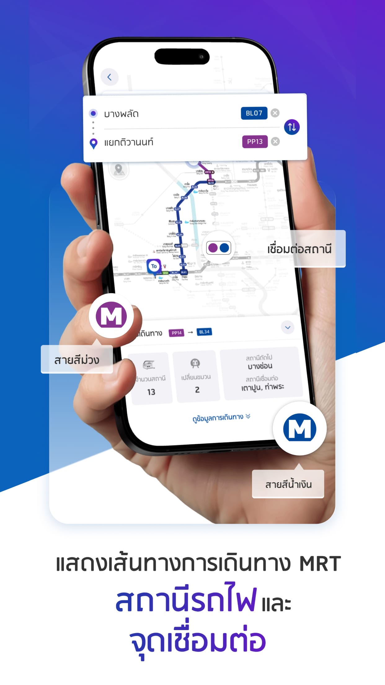 Make your daily commute easier with BEM MRT, the all-in-one application designed to help you navigate Bangkok’s MRT system effortlessly. Plan smarter, travel faster, and stay informed with real-time information across Blue Line and Purple Line.